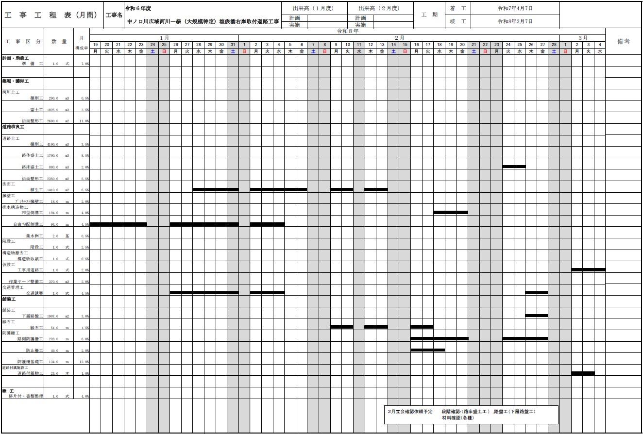 中ノ口川広域河川一級(大規模特定) 塩俵橋右岸取付道路工事 |