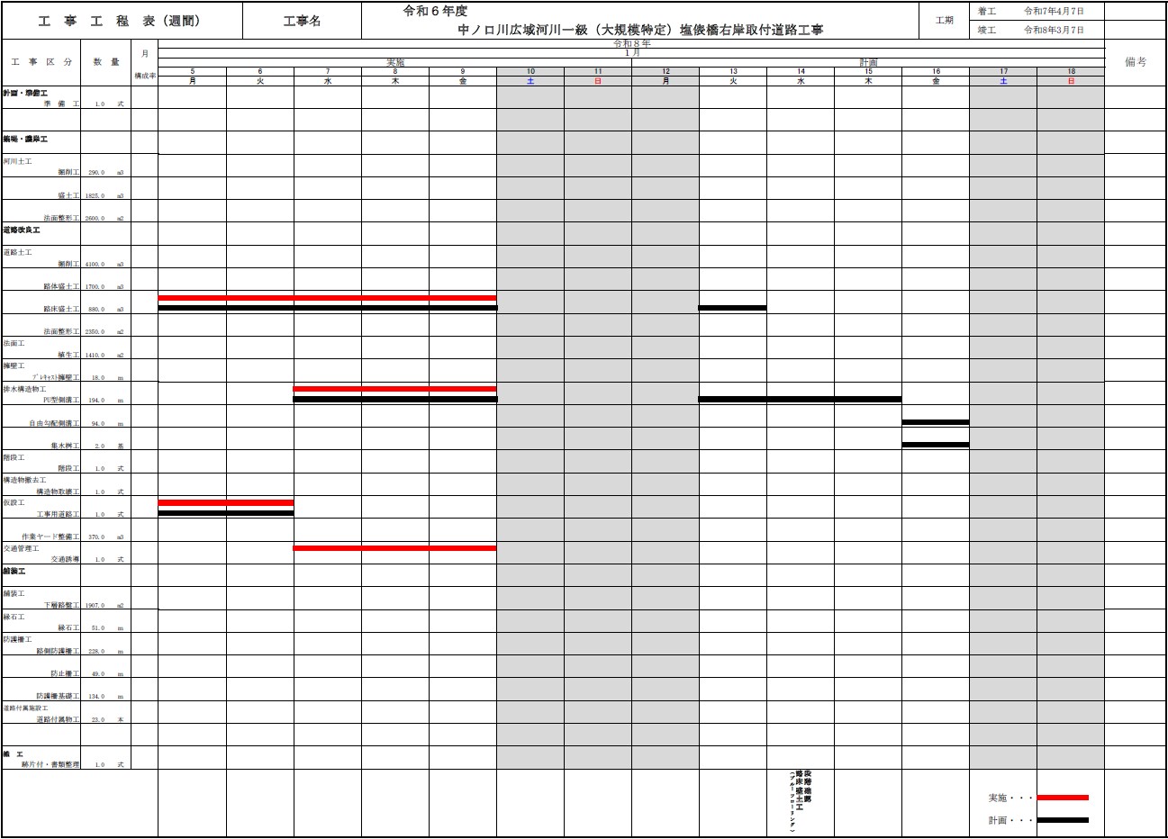 週間工程表